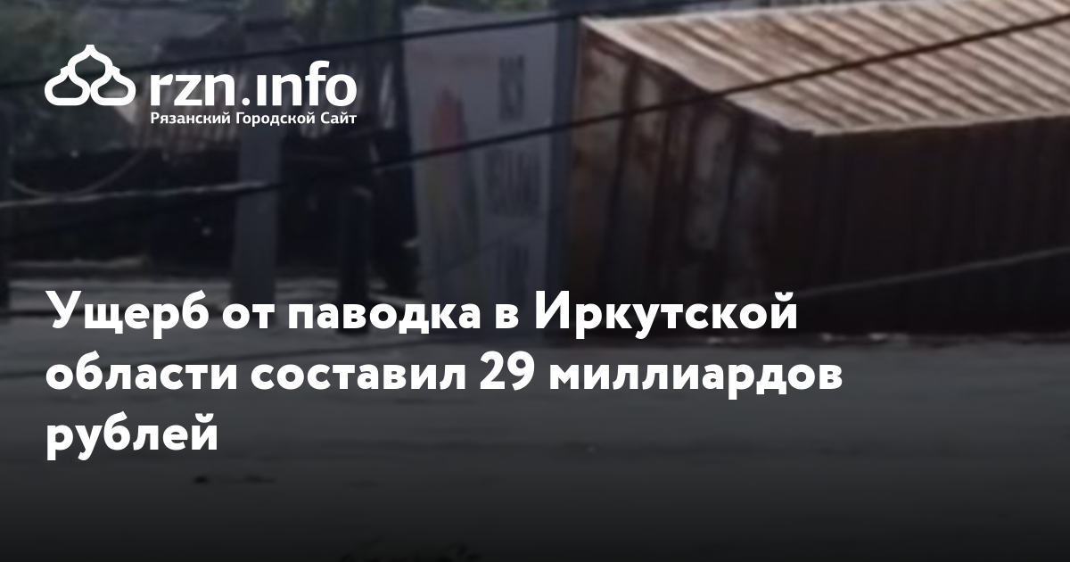 Ущерб от паводка в Иркутской области составил 29 миллиардов рублей. Об этом сообщил сайт правительства Иркутской области.
