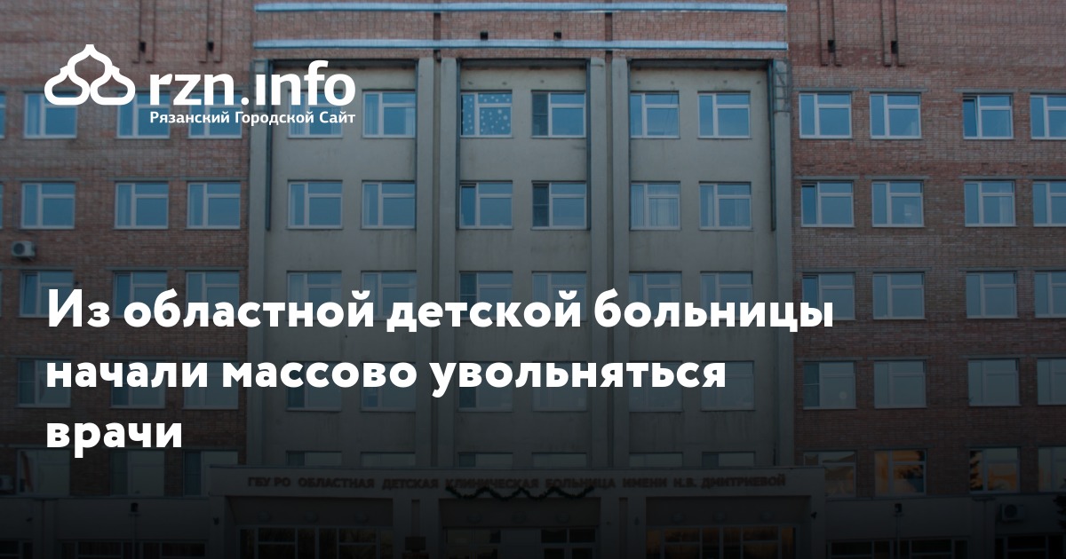 Из областной детской больницы начали массово увольняться врачи. Об этом RZN.info сообщили в профсоюзе медработников «».
