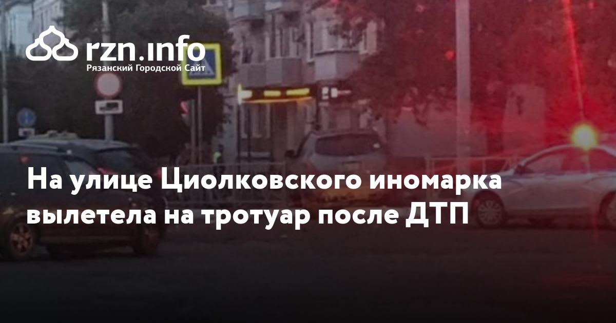 На улице Циолковского иномарка вылетела на тротуар после ДТП. Фото опубликовали в группе «Подслушано у водителей Рязани».