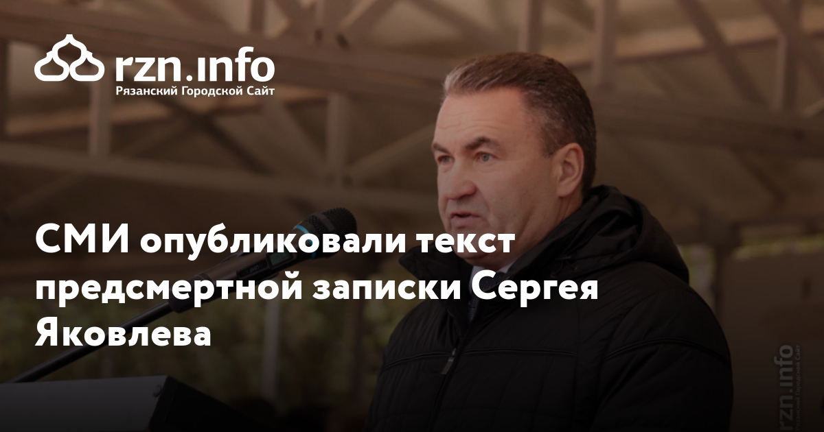 Издание «Своя колокольня» опубликовало текст предсмертной записки Сергея Яковлева.