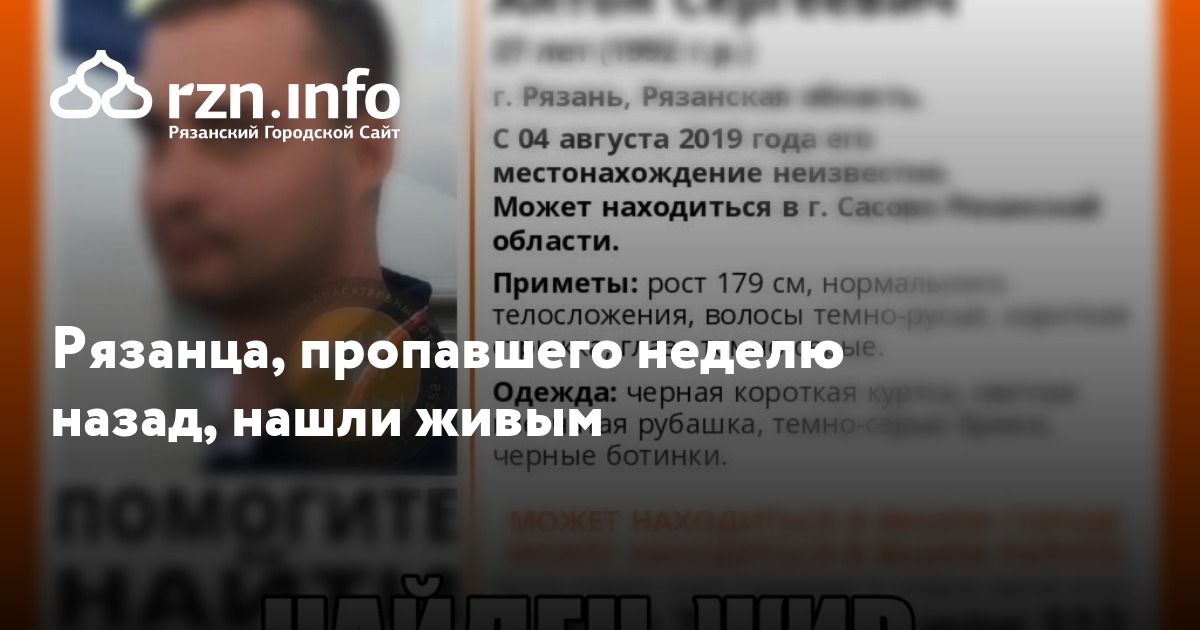 Напомним, ранее в Рязани пропал 27-летний мужчина.
