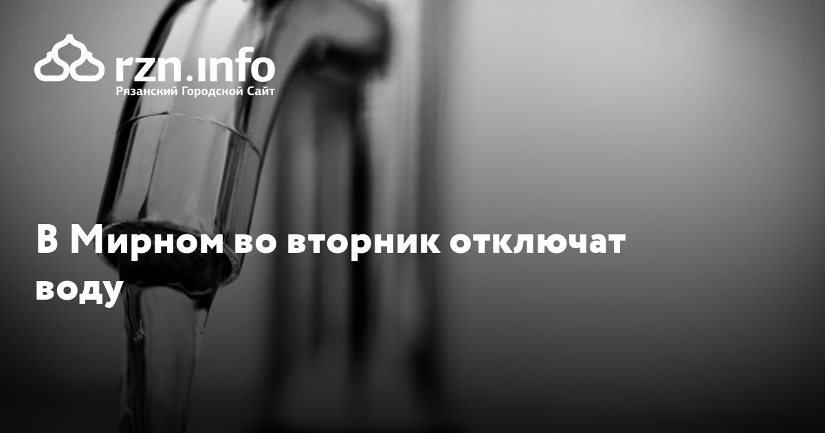 Во вторник, 13 августа, в поселке Мирный отключат холодную воду. Об этом сайт администрации Рязани.