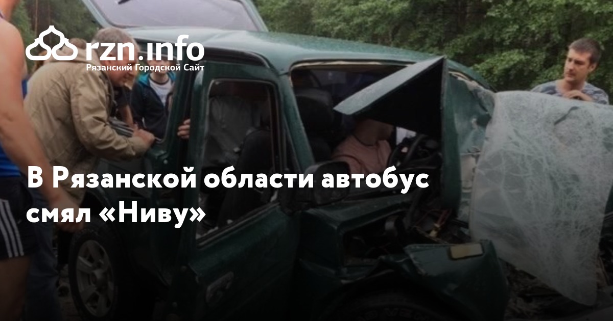 В Рязанской области рейсовый автобус смял Niva. Фотографию с места аварии опубликовали в группе «Автоклуб города Касимова».