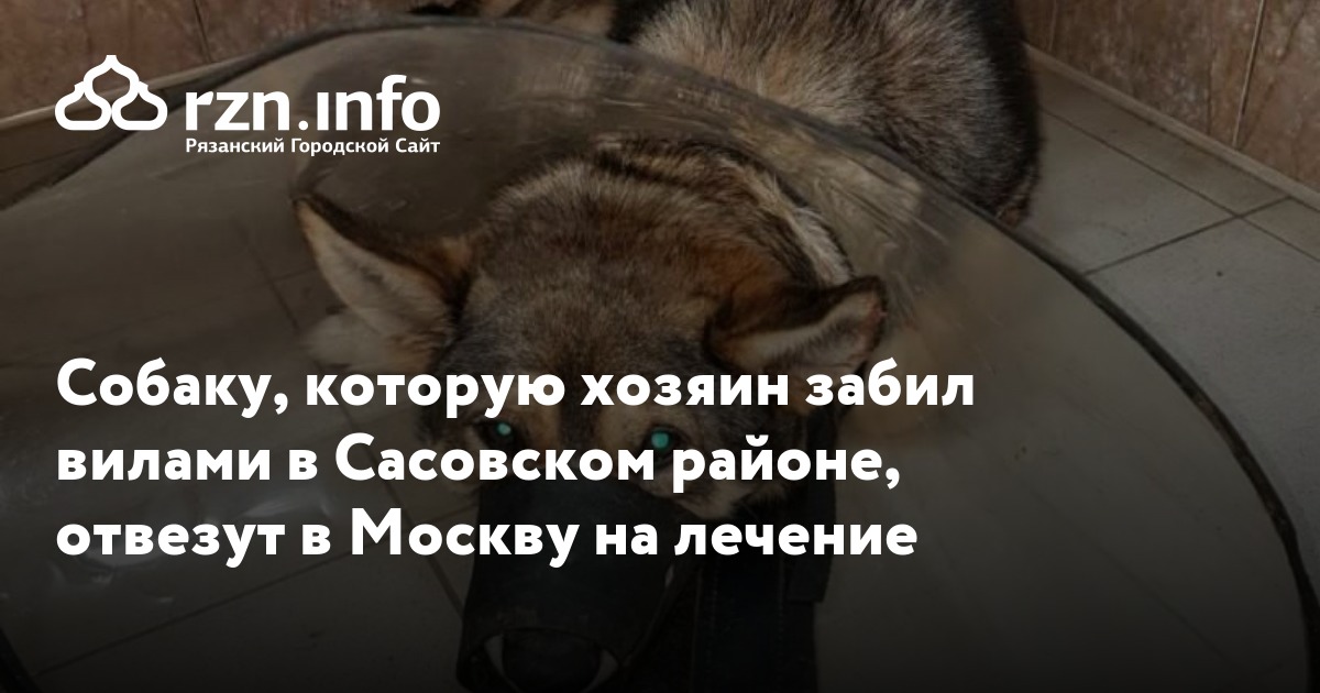 Собаку, которую хозяин забил вилами в Сасовском районе, отвезут в Москву на лечение