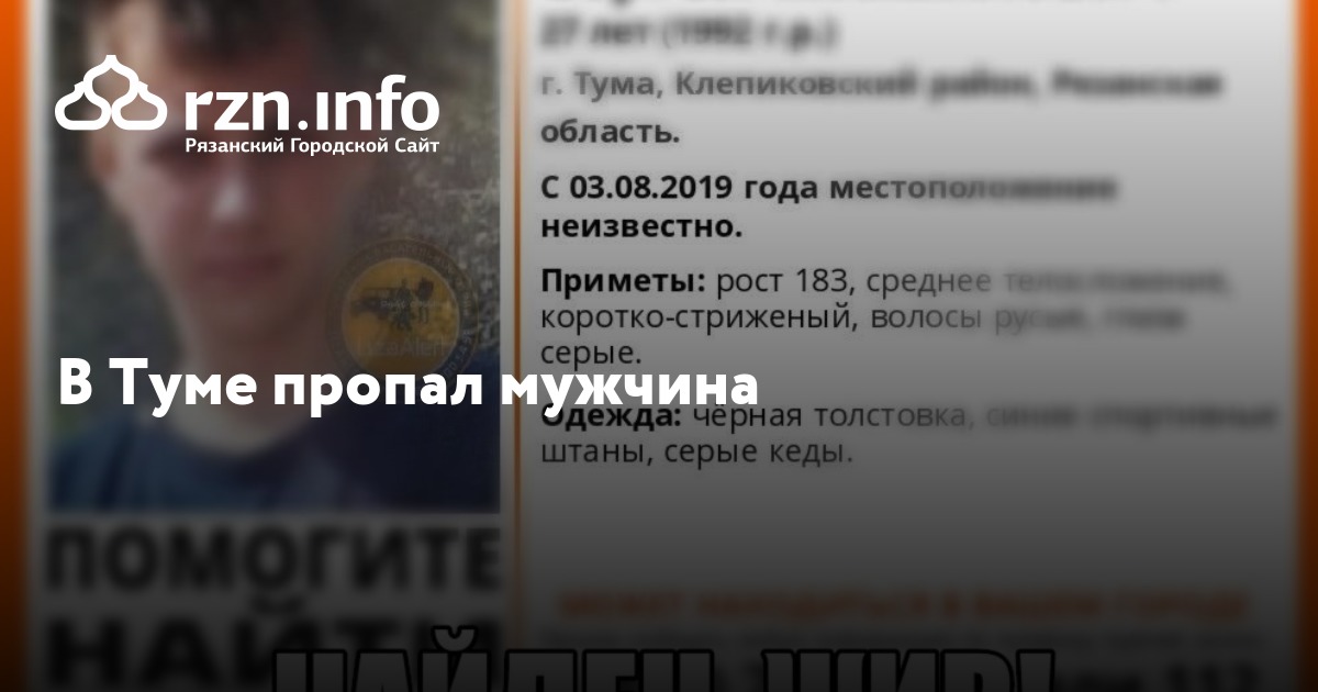 В клепиковском поселке Тума пропал 27-летний Сергей Дмитриев. Об этом в воскресенье, 4 августа, сообщили в поисково-спасательном отряде «».