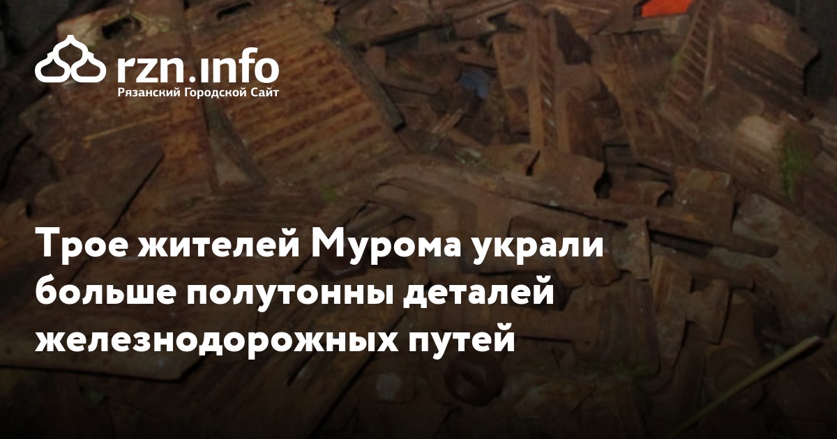 Трое жителей Мурома 46, 57 лет и 41 года украли больше пятисот килограммов железнодорожных путей. Об этом сообщил регионального УМВД.