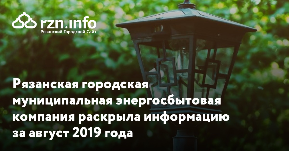 Рязанская городская муниципальная энергосбытовая компания раскрыла информацию за август 2019 года