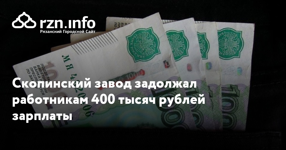 Скопинский завод задолжал работникам 400 тысяч рублей зарплаты