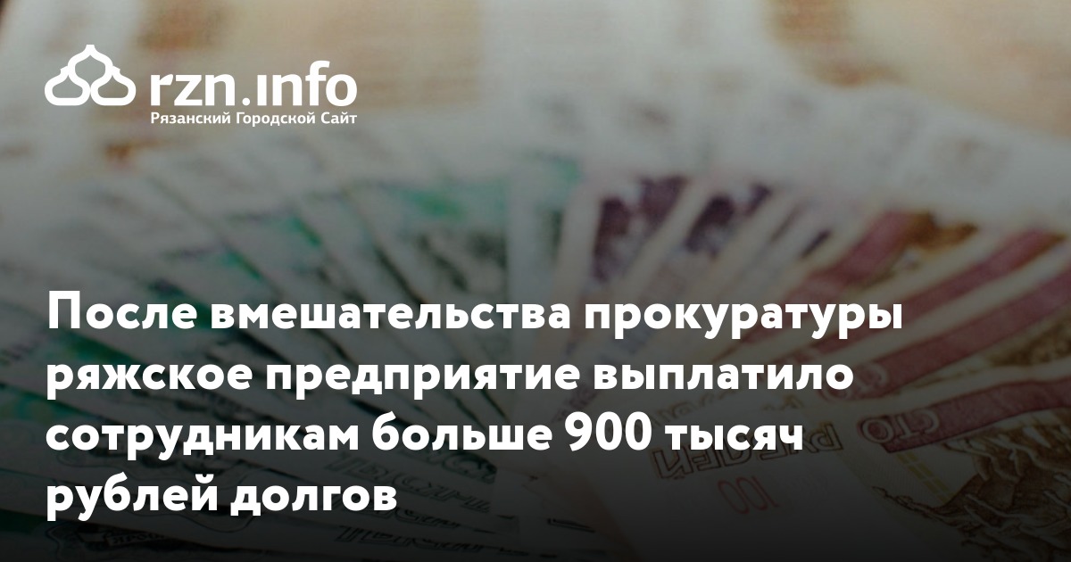 После вмешательства прокуратуры ряжское предприятие выплатило сотрудникам больше 900 тысяч рублей долгов