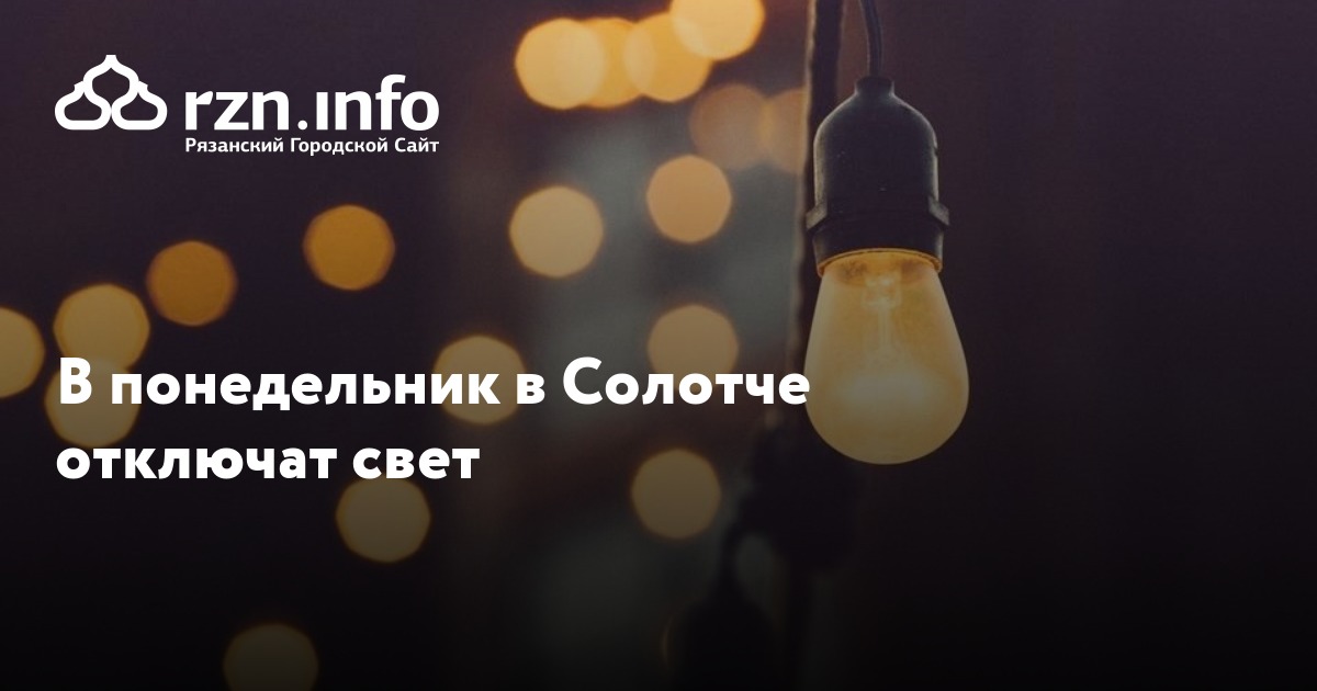 В понедельник, 16 сентября, в Солотче отключат свет. Об этом сообщил горадминистрации.