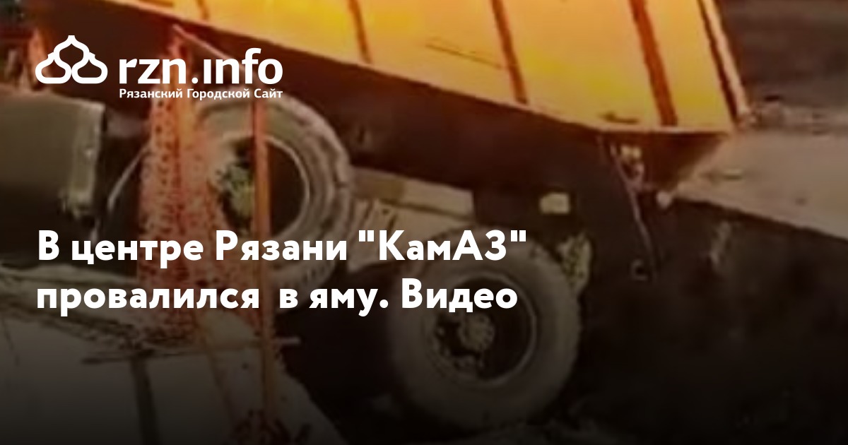В центре Рязани «КамАЗ» с песком провалился в яму. Видео опубликовали в группе «Подслушано у водителей Рязани» во вторник, 17 сентября.