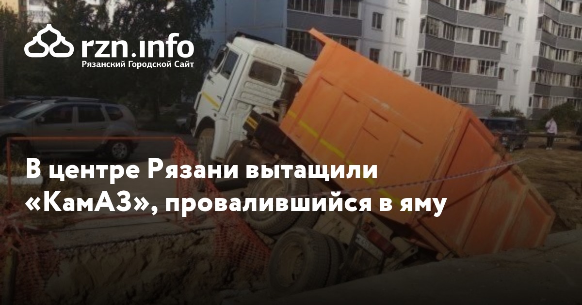 В центре Рязани вытащили «КамАЗ», провалившийся в яму