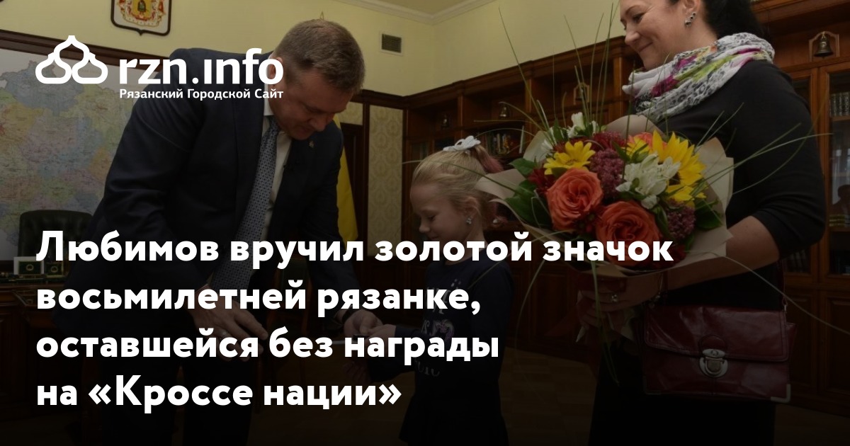 Любимов вручил золотой значок восьмилетней рязанке, оставшейся без награды на «Кроссе нации»