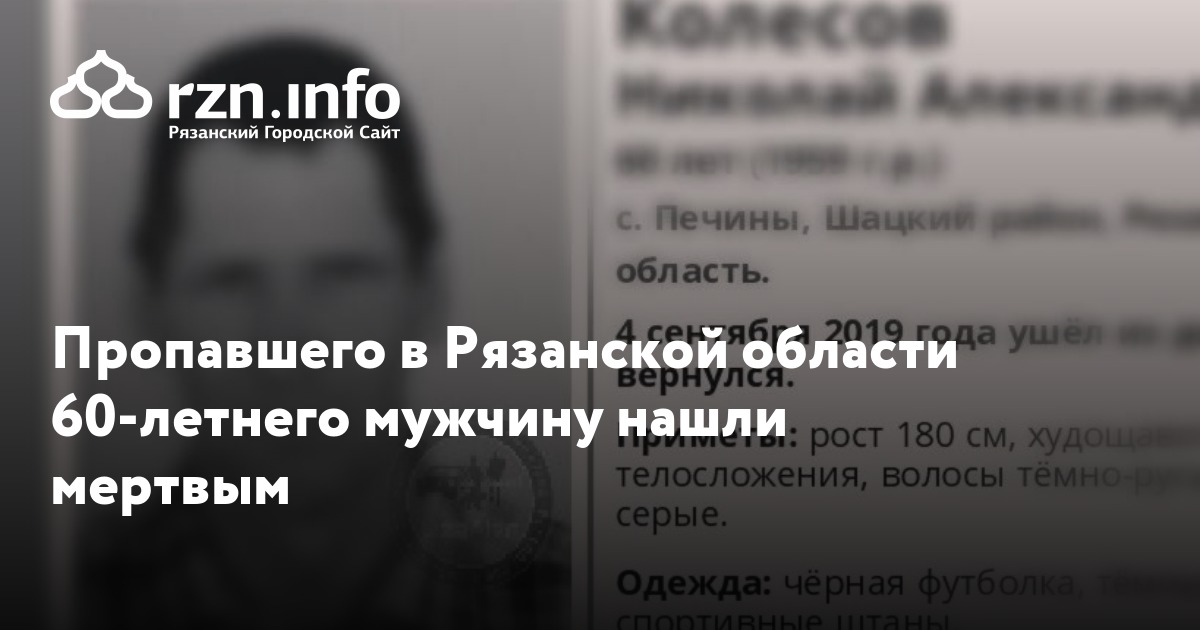 Пропавшего в Рязанской области 60-летнего Николая Колесова нашли мертвым. Об этом сообщили активисты поисково-спасательного отряда «Лиза Алерт».