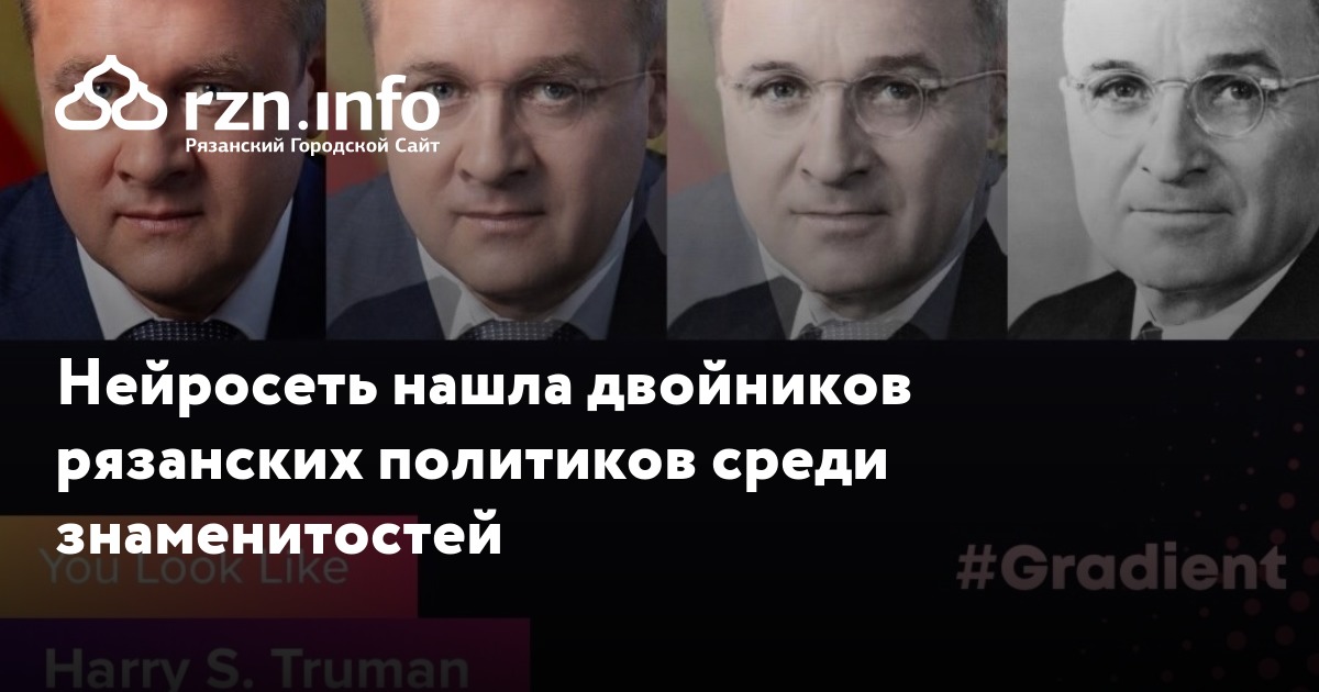 Программа Gradient, набирающая популярность в соцсетях, нашла двойников рязанских политиков среди знаменитостей. Нейросеть проанализировала черты лица пользователя и с помощью базы подобрала известных людей.