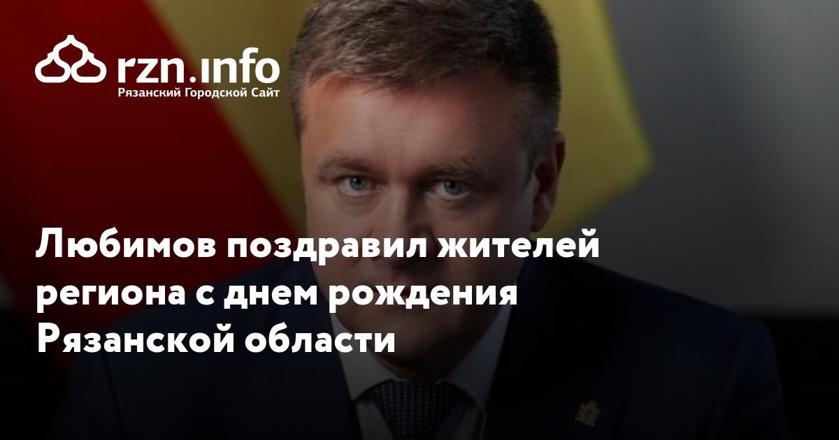 Любимов поздравил жителей региона с днем рождения Рязанской области