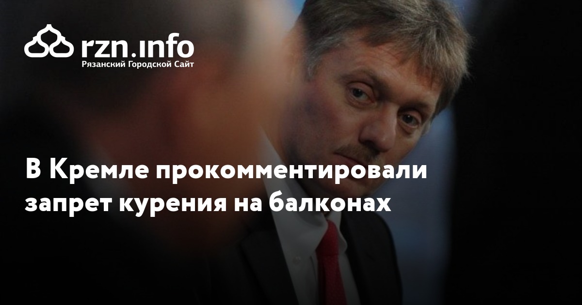 Пресс-секретарь президента России Дмитрий Песков прокомментировал введение запрета курить на балконах жилых домов. По его словам, в Кремле поддерживают любые меры, которые помогают спасти жизни, пишет .