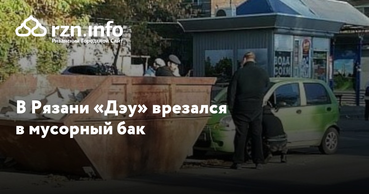 В Рязани Daewoo Matiz врезался в мусорный бак. Фото с места аварии опубликовал очевидец в Facebook.