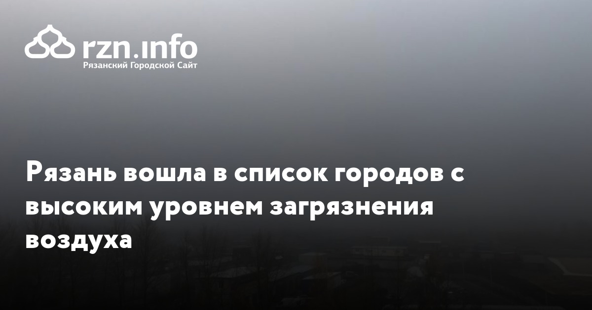 По итогам исследований Рязань вошла в перечень городов с зарегистрированными случаями высокого загрязнения атмосферного воздуха.
