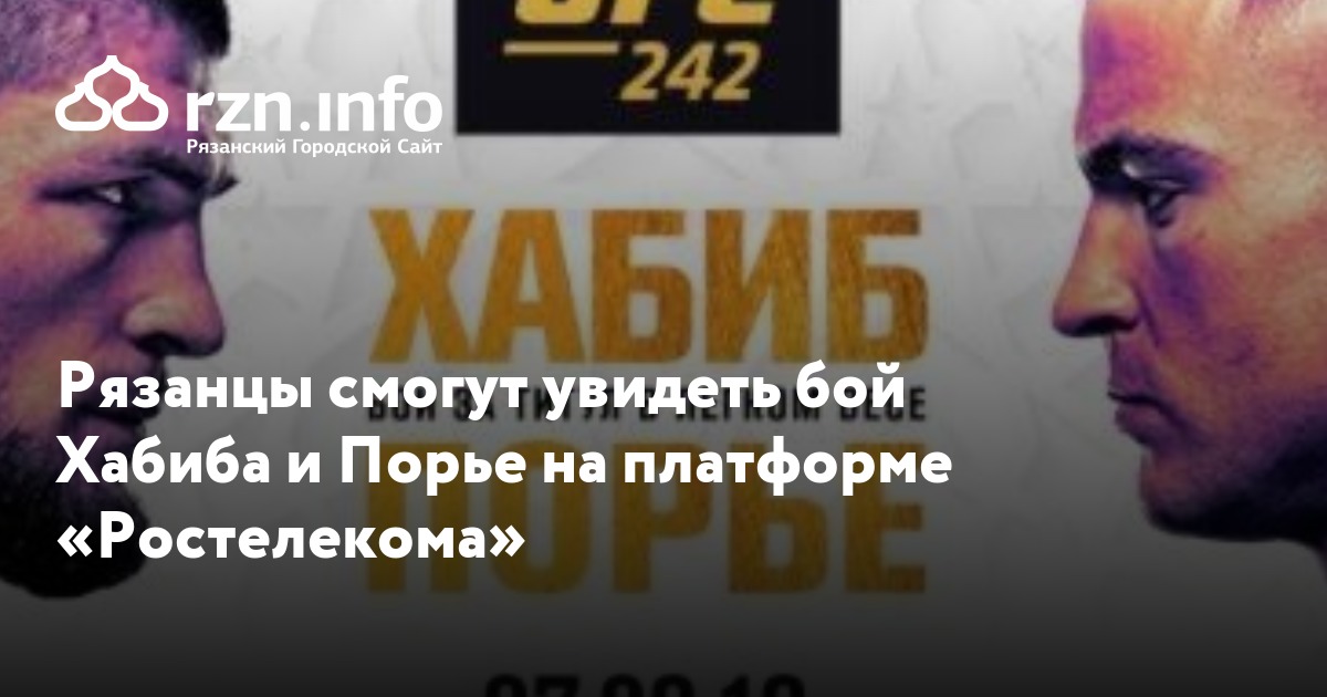 В субботу, 7 сентября, «Ростелеком» покажет турнир UFC 242: Хабиб vs Порье в прямом эфире. Главным событием вечера станет бой за объединение поясов в легком весе между чемпионом Хабибом Нурмагомедовым и обладателем временного титула Дастином Порье.