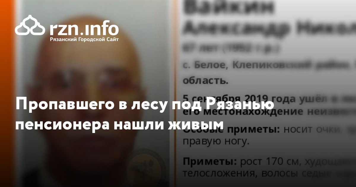 Пропавшего в лесу под Рязанью 67-летнего Александра Вайкина нашли живым. Об этом сообщили в группе ПСО «Лиза Алерт Рязань».