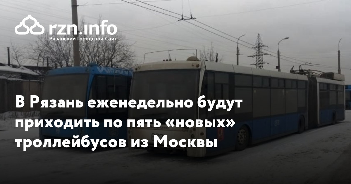 Начиная с понедельника, 13 января, в Рязань еженедельно будут приходить по пять троллейбусов из Москвы. Об этом сообщил сайт горадминистрации.