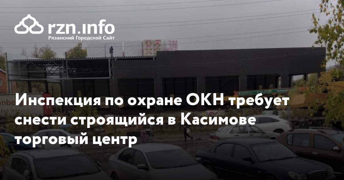 Инспекция по охране ОКН требует снести строящийся в Касимове торговый центр. Об этом сообщил сайт Арбитражного суда.