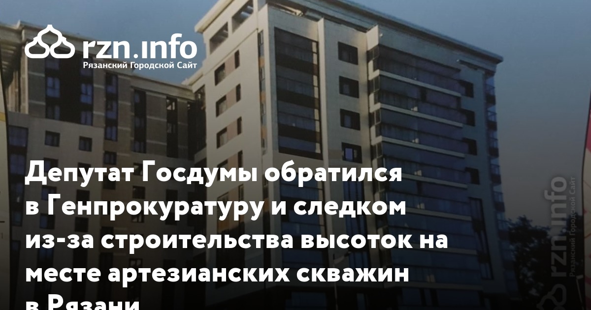 Депутат Госдумы от фракции ЛДПР Александр Шерин обратился в Генпрокуратуру с просьбой проверить законность строительства высоток на месте артезианских скважин в Рязани. На пересечении улицы Тимуровцев и Касимовского шоссе хотят возвести три дома высотой 9-11 этажей с подземной парковкой и торгово-выставочный центр, несмотря на критику рязанцев и градозащитников.