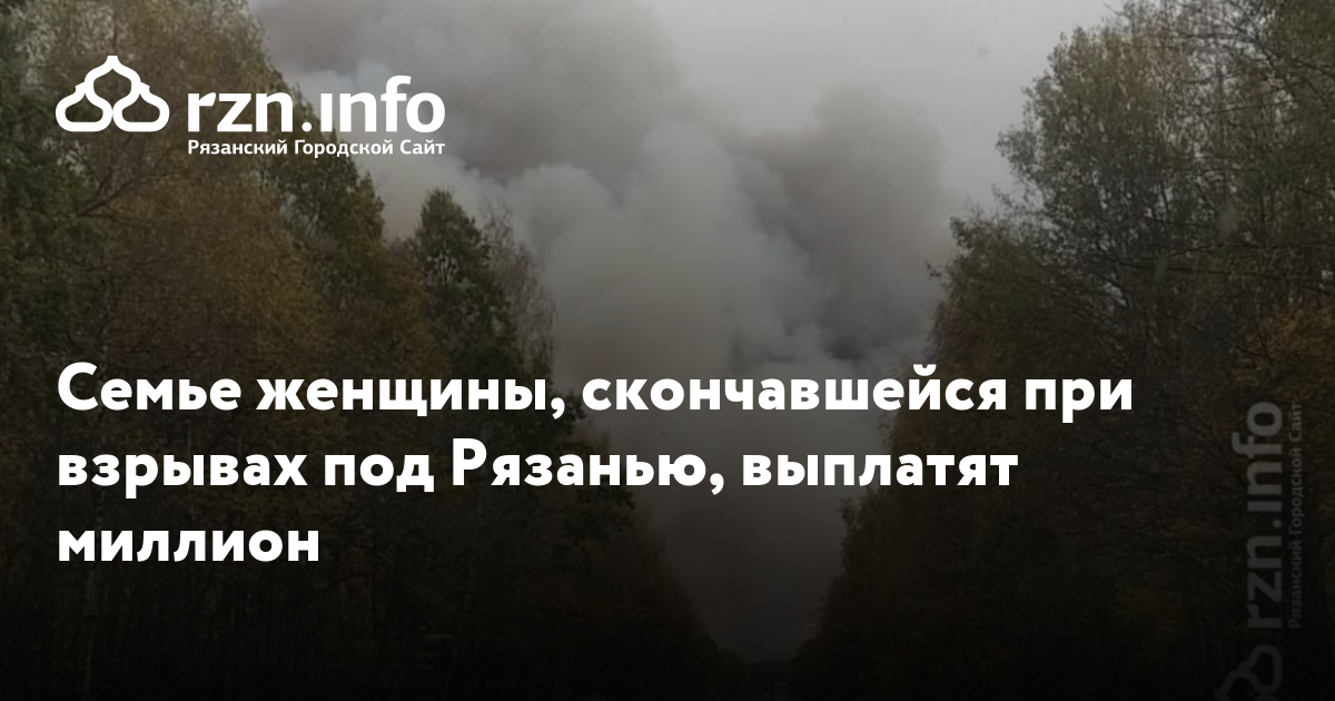 Семье женщины, скончавшейся при взрывах под Рязанью, выплатят миллион рублей, сообщил сайт регионального правительства.