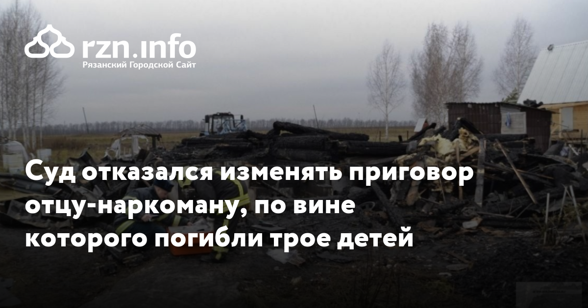 Рязанский областной суд отказался изменять приговор отцу-наркоману, по вине которого погибли трое детей. Об этом в среду, 14 октября, сообщила пресс-служба прокуратуры Рязанской области.