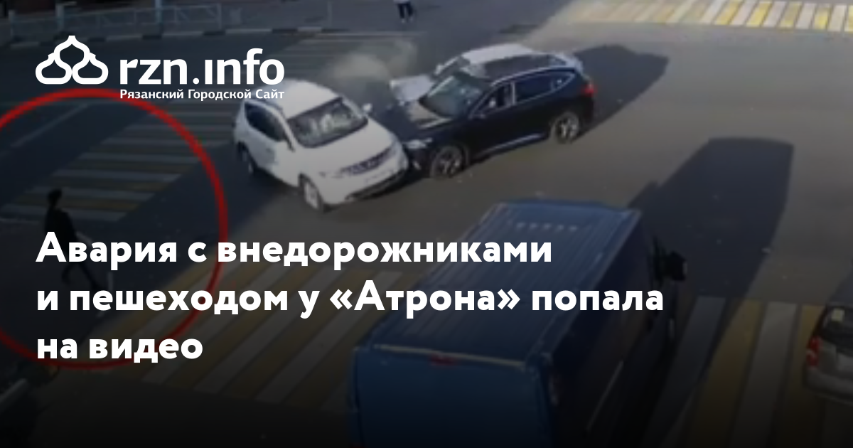 Авария с внедорожниками и пешеходом у «Атрона» попала на видео. Ролик опубликовали «Дороги Рязани».