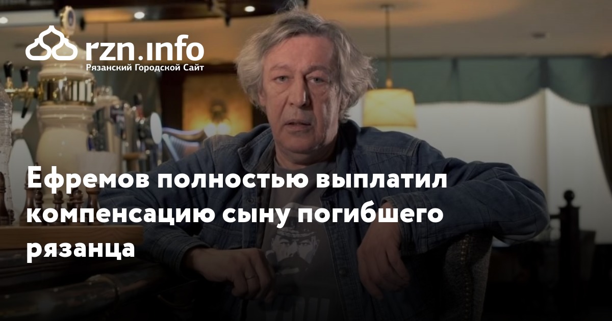 Михаил Ефремов полностью выплатил компенсацию старшему сыну погибшего рязанца Сергея Захарова Виталию. Об этом в четверг, 15 октября, сообщил представитель потерпевшего Сергей Аверцев, ТАСС.