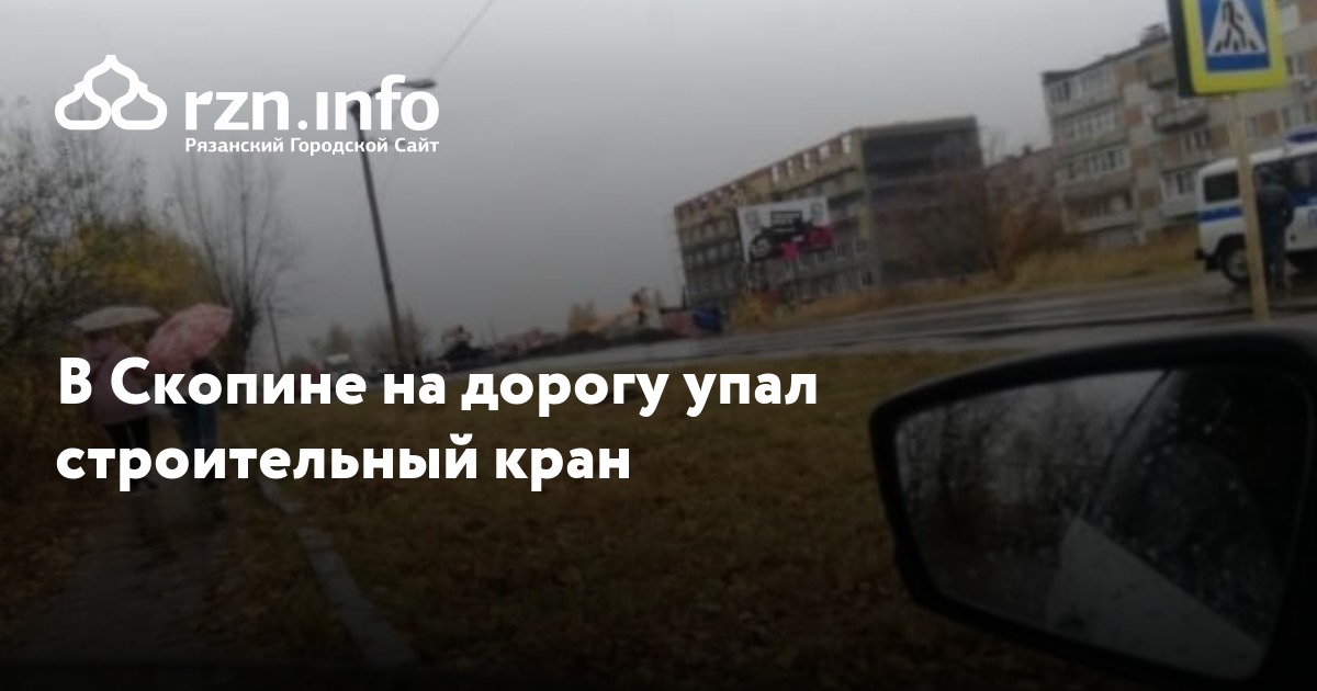 Днем в пятницу, 16 октября, в Скопине на дорогу упал строительный кран. Фото и видео с места происшествия появились «ВКонтакте».