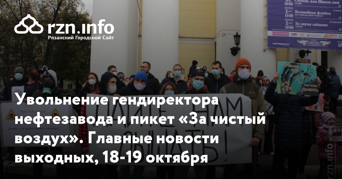 СМИ сообщили об увольнении гендиректора Рязанского нефтезавода. На пикете «За чистый воздух» собрались около 300 рязанцев. Рязанские общественники призвали власти искать источник испорченного воздуха.