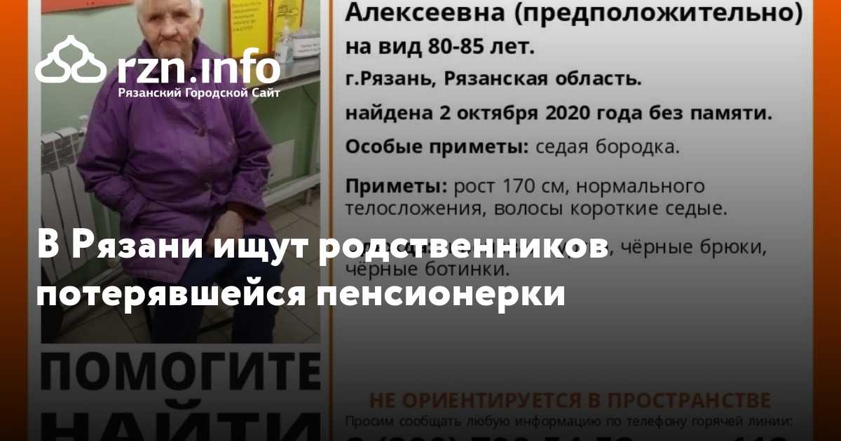 В Рязани ищут родственников пенсионерки, которую нашли 2 октября. Об этом сообщили волонтеры «Лиза Алерт».
