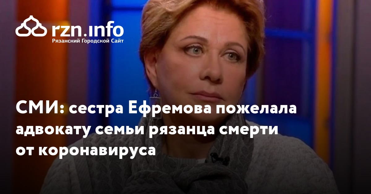 Сестра Михаила Ефремова Анастасия пожелала Александру Добровинскому, адвокату семьи погибшего рязанца Сергея Захарова, смерти от коронавируса. Об этом она написала в Telegram, сообщил портал со ссылкой на пост женщины, который более недоступен.