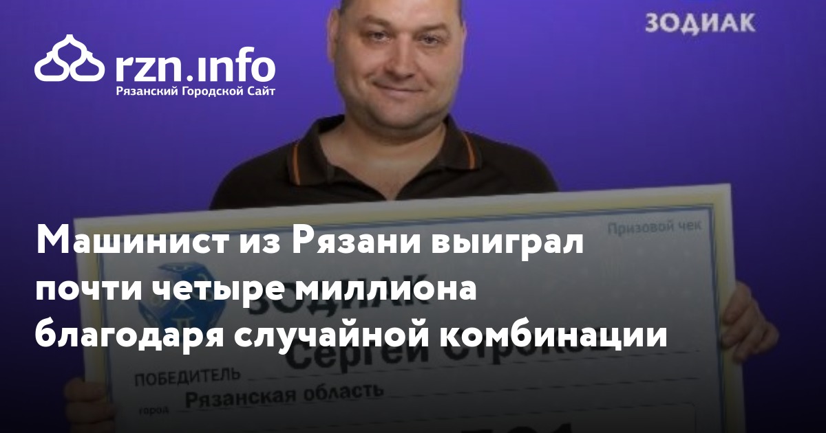 Машинист из Рязани выиграл почти четыре миллиона благодаря случайной комбинации