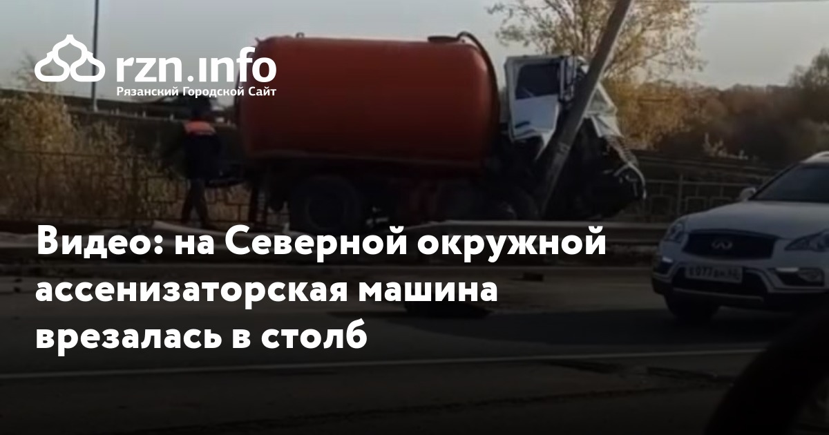 Видео: на Северной окружной ассенизаторская машина врезалась в столб