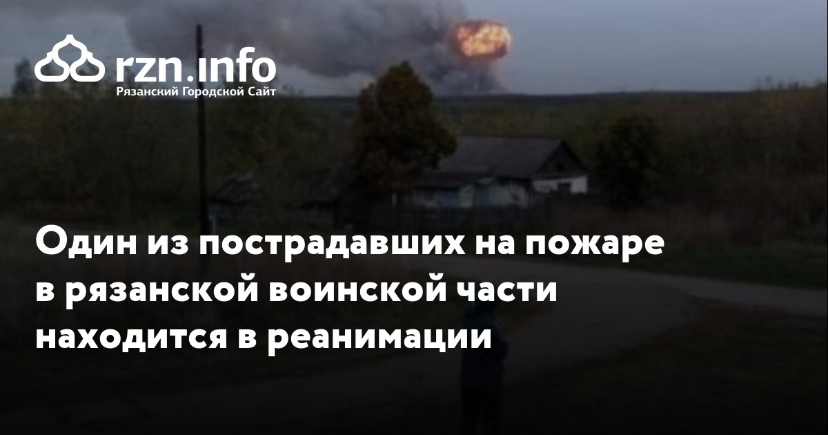 Один из пострадавших на пожаре в рязанской воинской части находится в реанимации, сообщило правительство региона.