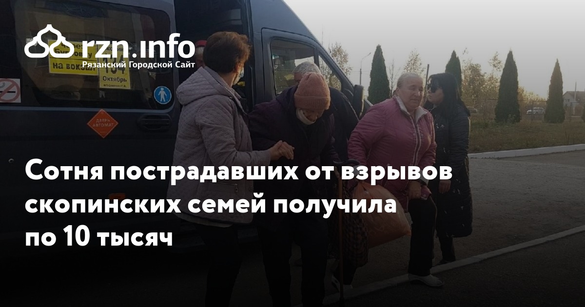 Сотня скопинских семей, пострадавших от взрывов в воинской части, получила по десять тысяч рублей на неотложные нужны. Об этом сообщил сайт рязанского правительства.