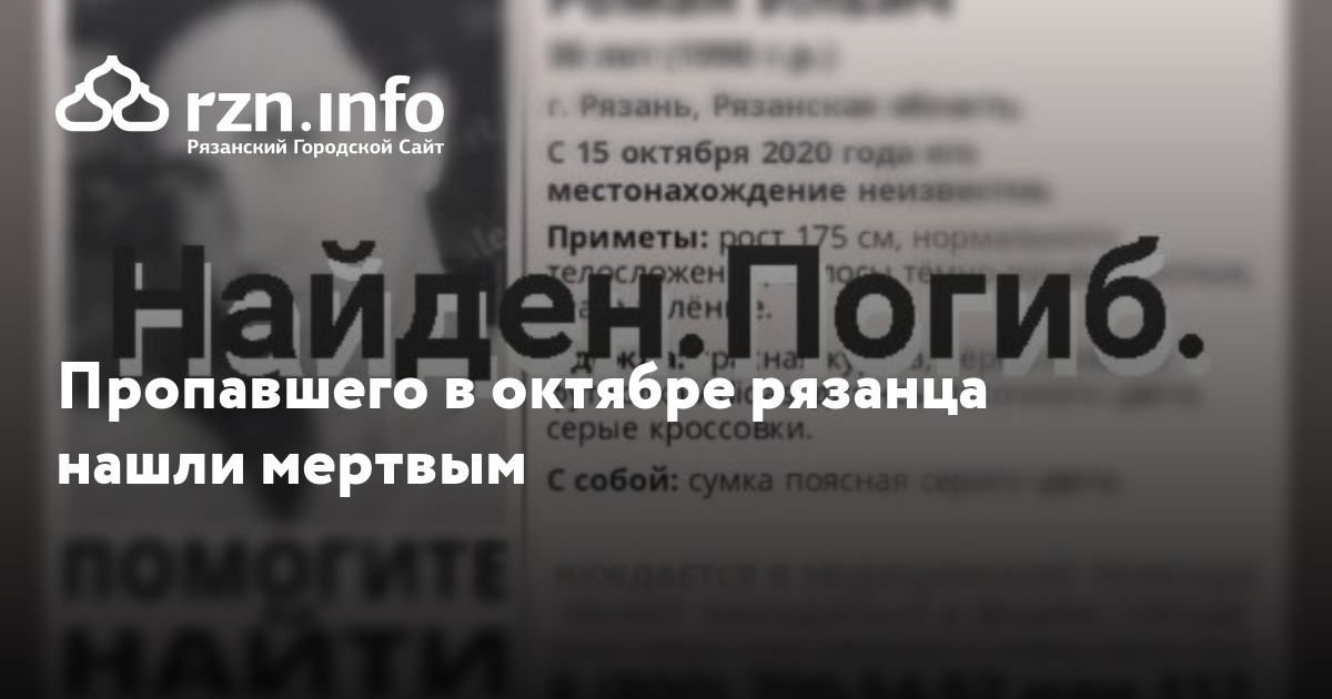 Рязанца Романа Яшина, который пропал 15 октября, нашли мертвым. Об этом сообщили волонтеры отряда «Лиза Алерт».