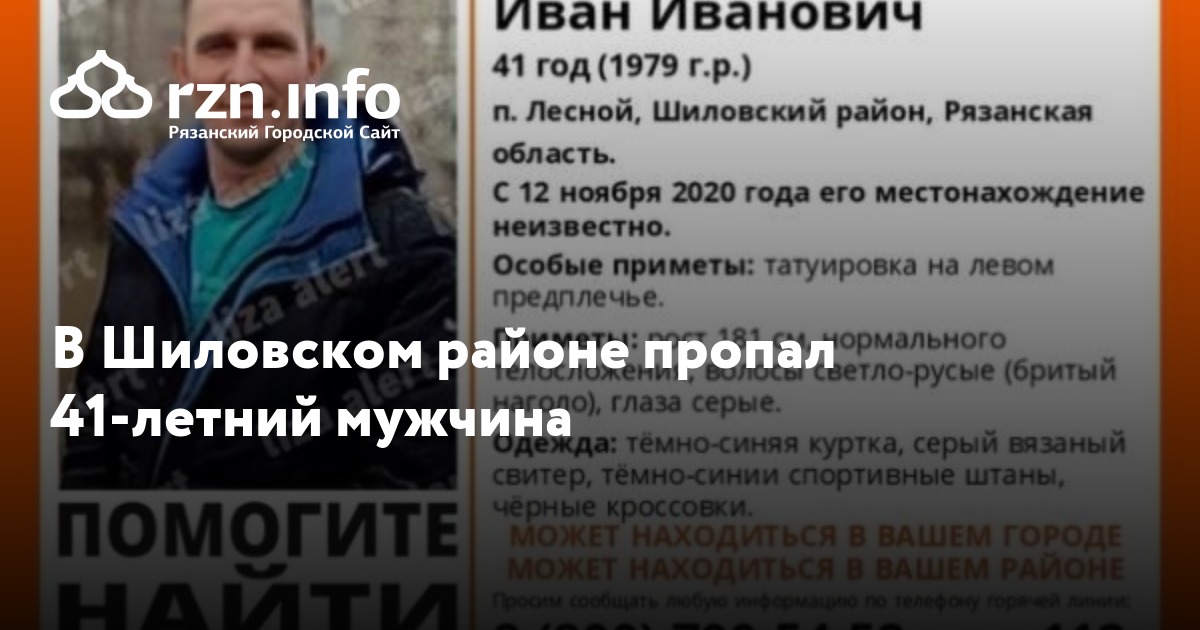 В Шиловском районе пропал 41-летний Иван Иванович Аносов из поселка Лесной. Об этом сообщили волонтеры отряда «Лиза Алерт».