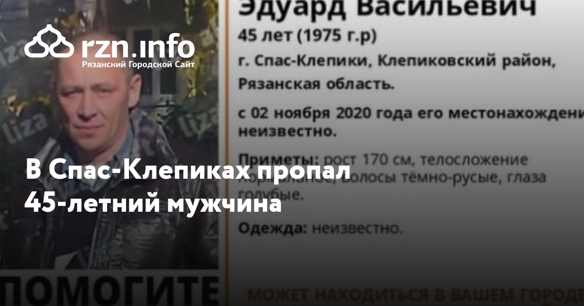 В Спас-Клепиках пропал 45-летний Эдуард Верочкин. Об этом в среду, 18 ноября, сообщил .