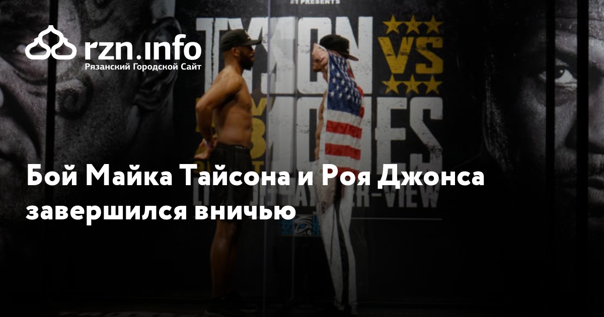 Стал известен результат боя Майка Тайсона против Роя Джонса. Поединок прошел в Лас-Вегасе в рамках турнира «Битва легенд» и закончился вничью, передает РИА Новости.