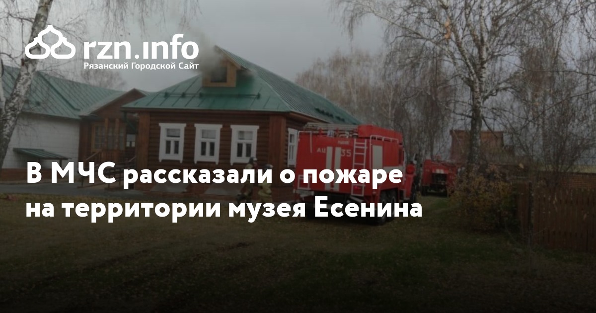 Пресс-служба рязанского ГУ МЧС сообщила подробности тушения пожара территории музея Есенина в Константинове. Возгорание на чердаке чайной произошло в субботу, 7 ноября, в 12:28.