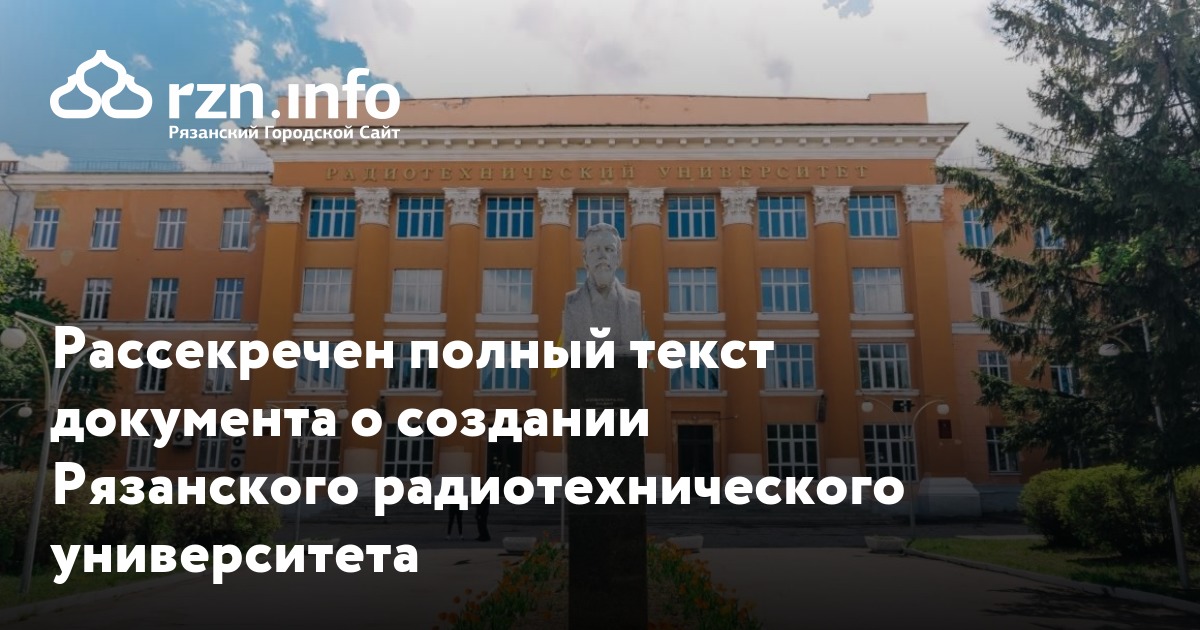 Постановление Совета министров инициировало создание «Рязанского радиотехнического института» по подготовке инженеров в области радиоэлектроники для радиолокационной и электровакуумной промышленности со сроком обучения пять лет и набором в 1952/1953 учебном году в институт 300 студентов.