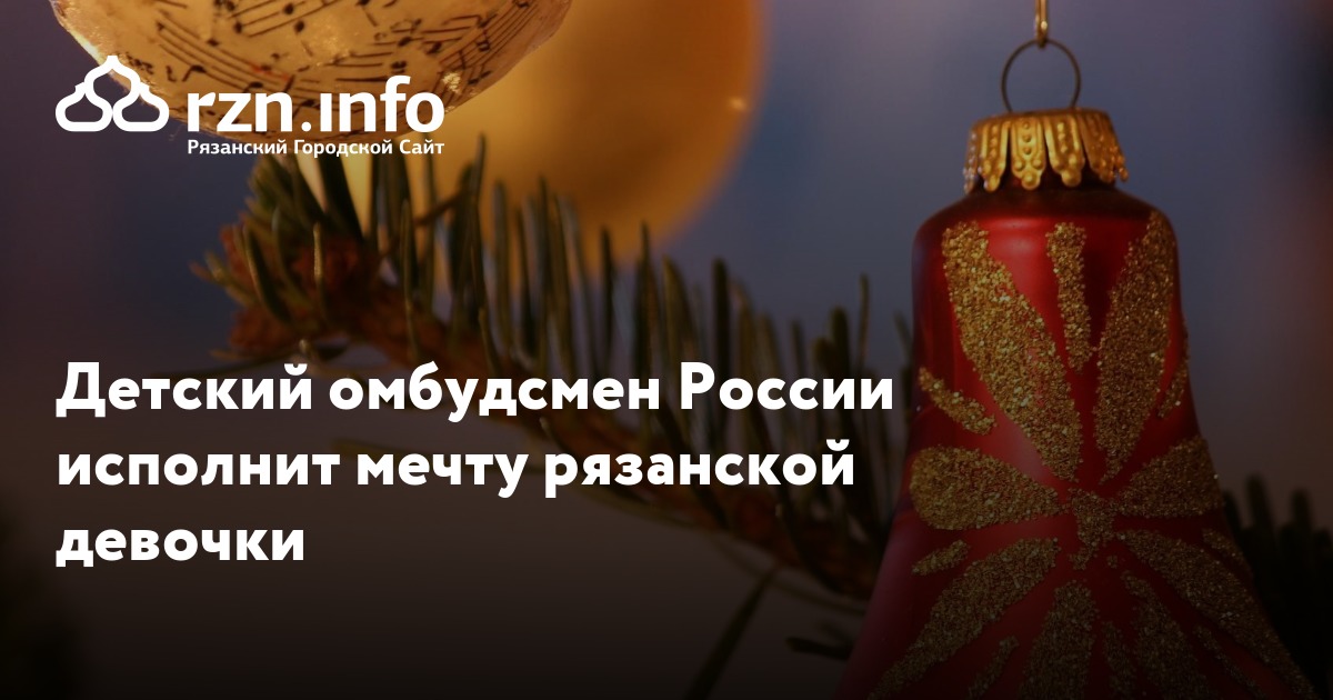 Детский омбудсмен России Анна Кузнецова исполнит мечту девочки из Рязанской области. Об этом в четверг, 24 декабря, со ссылкой на пресс-службу уполномоченного по правам ребенка сообщает РИА Новости.