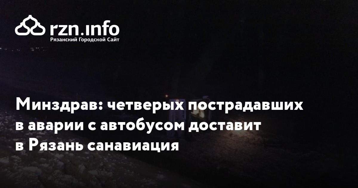 Рязанский минздрав сообщил РЗН. инфо, что четверых пострадавших в аварии с автобусом из Скопинского района в Рязань доставит санавиация. Еще семерых перевезут на машинах.