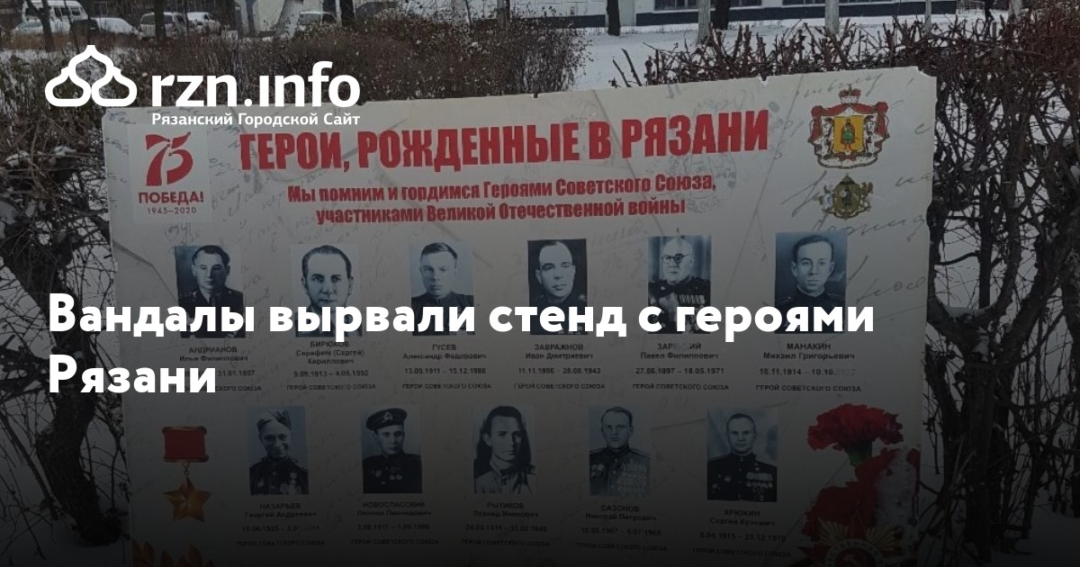 В Московском районе Рязани вандалы оторвали плакат с Героями Великой Отечественной войны. На стенд, лежащий в кустах, обратил внимание местный житель. Власти пообещали восстановить стенд и вернуть на место.