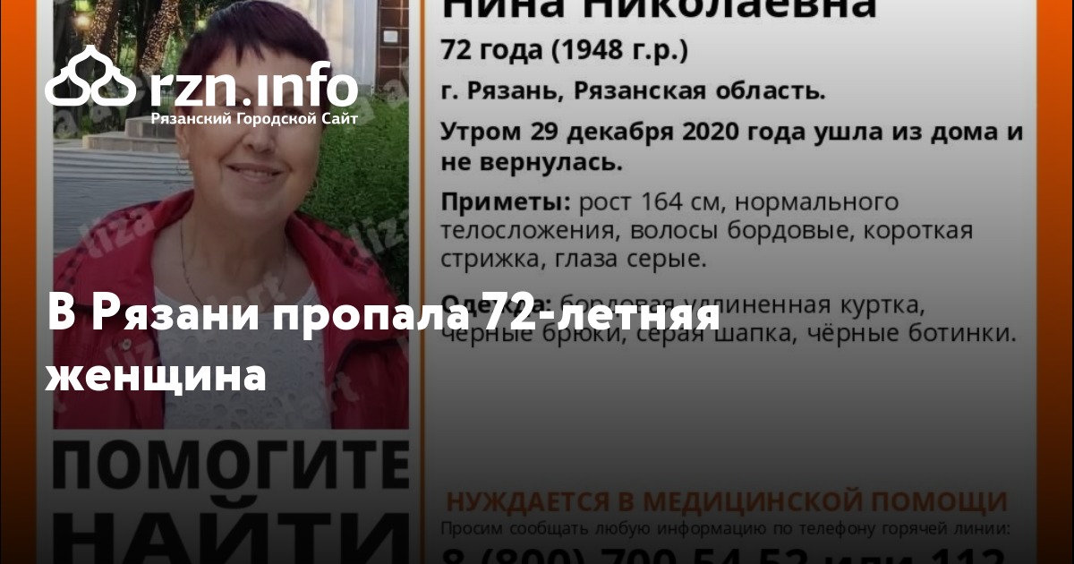 В Рязани пропала 72-летняя Нина Гришина. Об этом сообщили в группе поисково-спасательного отряда «ЛизаАлерт Рязань».